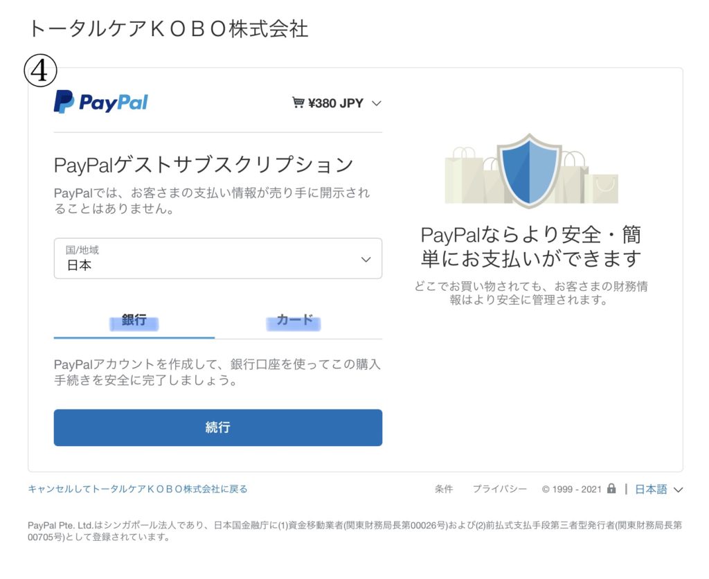 ご入力が完了致しましたら、『支払いを続ける』をクリックして頂き、お手続きを続けます。