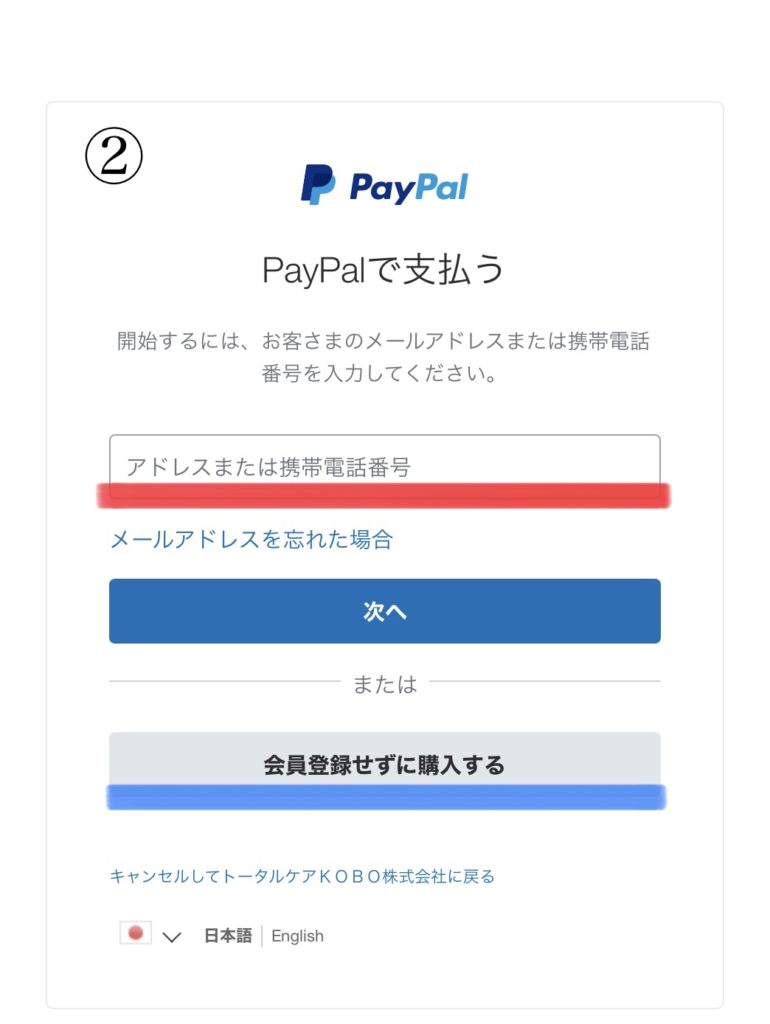 青の下線の『会員登録せずに購入する』をクリックしてください。